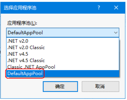 (3)单击“…”按钮,选择网站文件夹所在路径;单击“选择”按钮,弹出“选择应用程序池”对话框,如图3所示,该对话框中选择DefaultAppPool,单击“确定”按钮,返回“编辑网站”对话框,单击“确定”按钮,即可完成网站路径的选择。