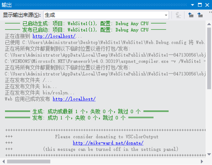 (7)发布成功后,在“输出”窗口中显示发布成功的相关信息,如图11所示。