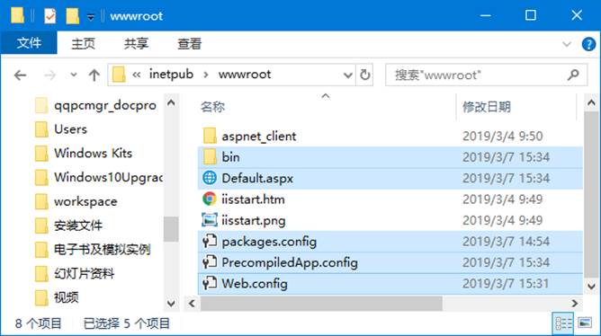发布成功后,打开选择的目标位置,即可看到发布完的 ASP.NET网站文件及文件,如图12所示。